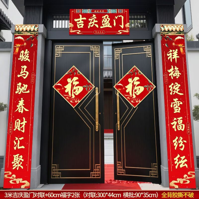 2026新年农村大门对联福字门贴装饰自建房大门对联超大福字春联 3米吉庆盈门对联+60cm福字2张