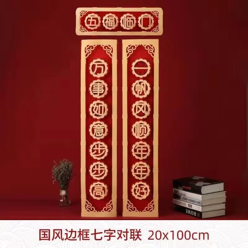 【厂家直供】现货创意立体醒狮舞狮对联春联可加logo高档毛毡福字 一帆风顺七字对联