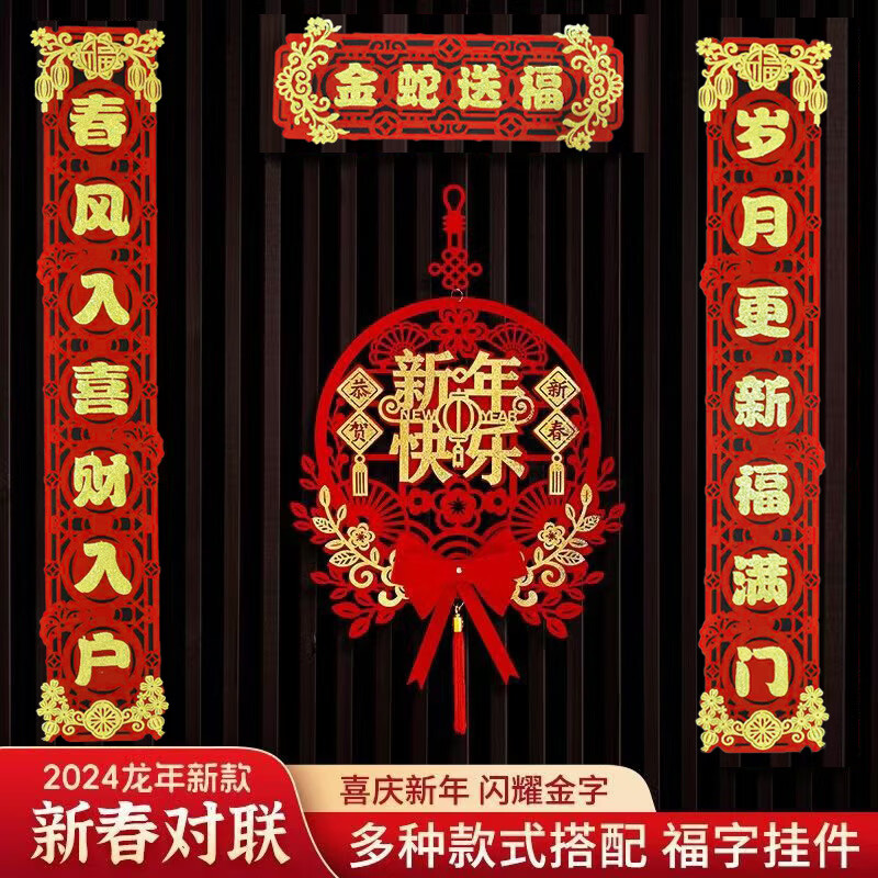 【严选】磁吸对联2025新款蛇年新年春联家用春节过年福字门贴高档 蛇年+福对联+新年快乐挂件