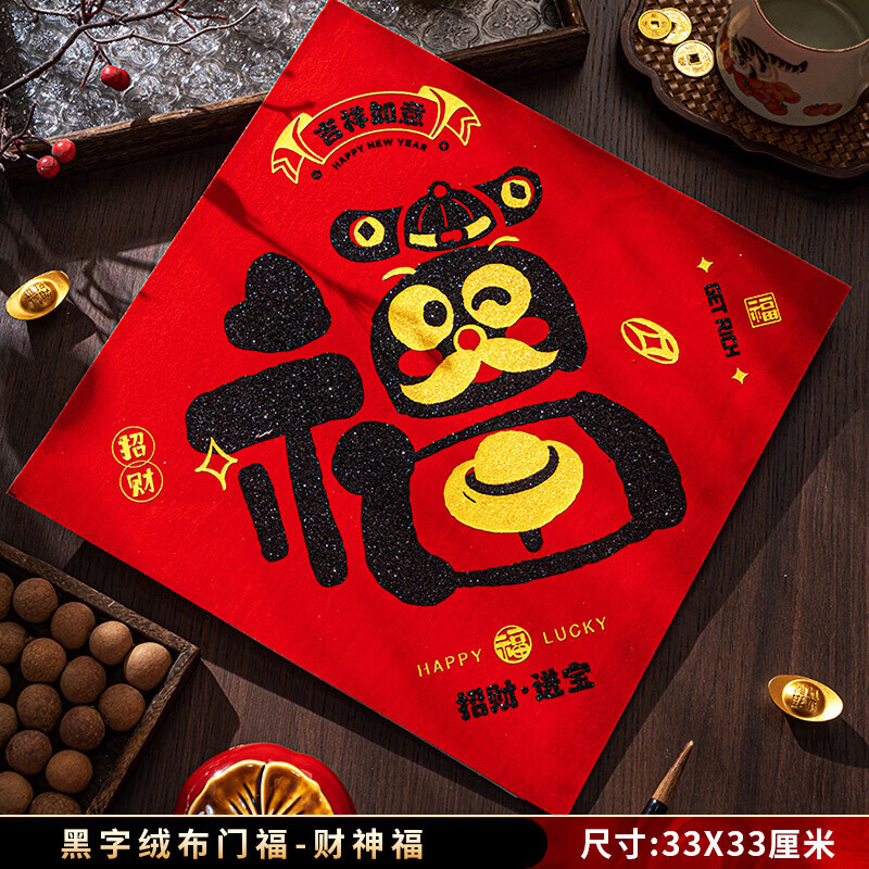 廷沫【优选百货】福字门贴绒布对联背胶2026新款春联批货春节家用过年 【财神福-黑字】绒布门幅 好事发生绒布对联