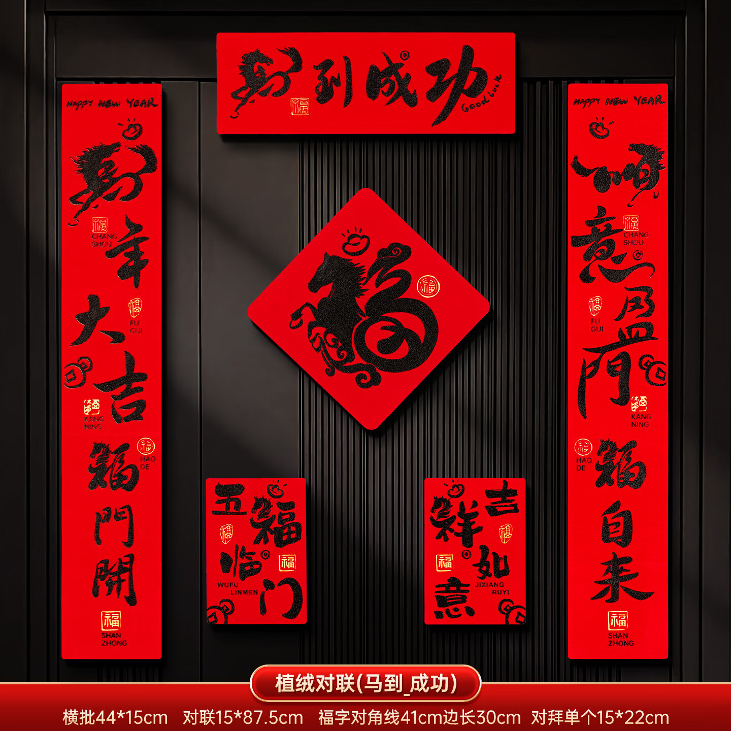 【厂家直发】马年磁吸春联对联批货春节过年植绒福字入户门贴年货 【植绒对联】马到成功对联套装 马年对联(粘胶款