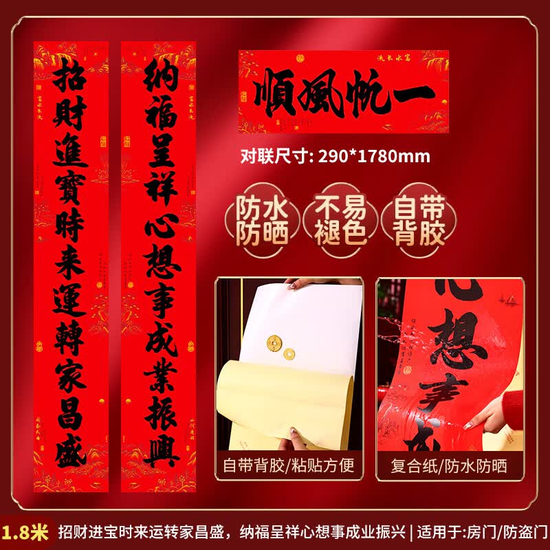 新款春联2026过年家用书法对联套装新春大门装饰用品门福春节对联 1.8米全胶撕不破【招财-纳福】(不含福字