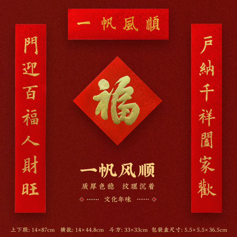 福人福地节庆用品 春节对联春联门贴福字新年装饰 一帆风顺