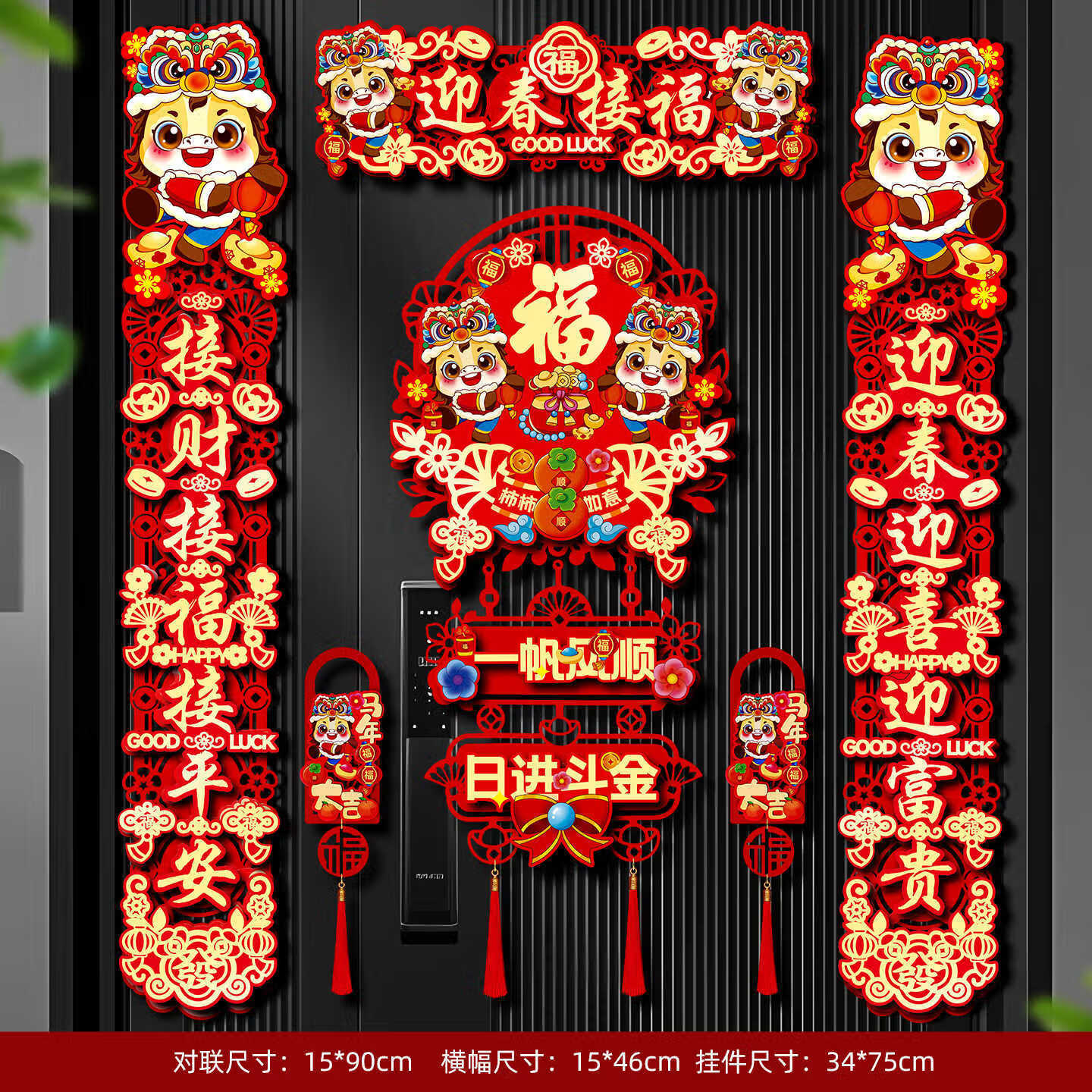 【厂家直发】对联2026新款马年春联新年家用植绒布对联磁吸福字过 富贵款-马年对联套装(磁吸款